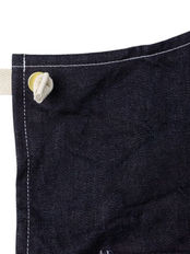 This long apron features a slit in the crotch area for easy leg movement, allowing for agile movement even during busy tasks. It has a neck strap design for quick and easy on and off, even when you're in a hurry. Tightening the waist straps in the front reduces strain on the neck. A pen pocket is located on the chest, and there are four pockets of varying sizes at the waist. There's also a pen pocket inside the large pocket. The straps are threaded through brass grommets, so if the straps break from heavy use, or if you want to switch to a back-cross style, or change the color of the straps to suit your mood, you can easily replace them with your preferred straps. The material is 12-ounce indigo denim woven in Kojima, Okayama Prefecture, one of Japan's leading denim production areas. It uses a special weaving method to approximate the look and feel of selvedge denim. Using 7-count warp threads dyed in deep indigo, it features a vintage-like appearance and will age beautifully over time. The product has been pre-washed. This simple yet durable apron is perfect for home use, and its sturdy construction also makes it ideal as a uniform for shops and other businesses. You can even hang a bird call from the D-ring on the pen pocket and enjoy some playful interaction with birds during your breaks – it might just refresh your mood!