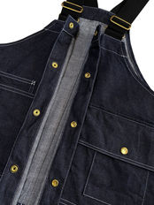 This vest eliminates the need for a bag, featuring eight pockets of varying sizes. Despite having numerous pockets, all are patch pockets without gussets, giving it a clean and streamlined look. It ensures practicality as workwear while allowing for a light and stylish appearance. It's easy to store tools and small items, making it ideal for gardening, DIY, and outdoor activities. This vest is perfect not only for outdoor play but also for various tasks and jobs. The material is 12-ounce indigo denim woven in Kojima, Okayama Prefecture, one of Japan's leading denim production areas. It uses a special weaving method that closely resembles the look and feel of selvedge denim. It uses 7-count warp threads dyed with dark indigo, giving it a vintage-like appearance and allowing you to enjoy its aging process. The product has been pre-washed. To increase durability, the snaps that are subjected to stress are reinforced with packing.
