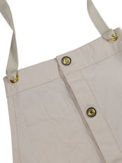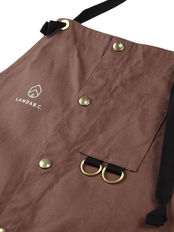 The Hunt apron has been in continuous production since the brand's inception. This short-length apron features large pockets inspired by mountain parkas. It's designed not only for gardening, camping, and DIY projects, but also for everyday wear as an inner layer under shirts or jackets. All colors feature an orange color on the underside of the pocket flaps, reminiscent of a hunter's apron. The metal fittings, such as D-rings and snaps, are made of solid brass, allowing you to enjoy their aging process. The neck and waist straps are threaded through grommets, so if they break from heavy use, you can easily replace them with your favorite cord or commercially available twill tape. You can also change the specifications to a shoulder strap type (cross-back type) using your favorite cord or commercially available twill tape. The material is medium-weight No. 11 canvas. It is durable and long-lasting, and you can enjoy its aging process. The garment has also been pre-washed, resulting in a natural, worn-in look. Wash it when it gets dirty, and enjoy the changing texture as it ages, creating your own unique apron.
